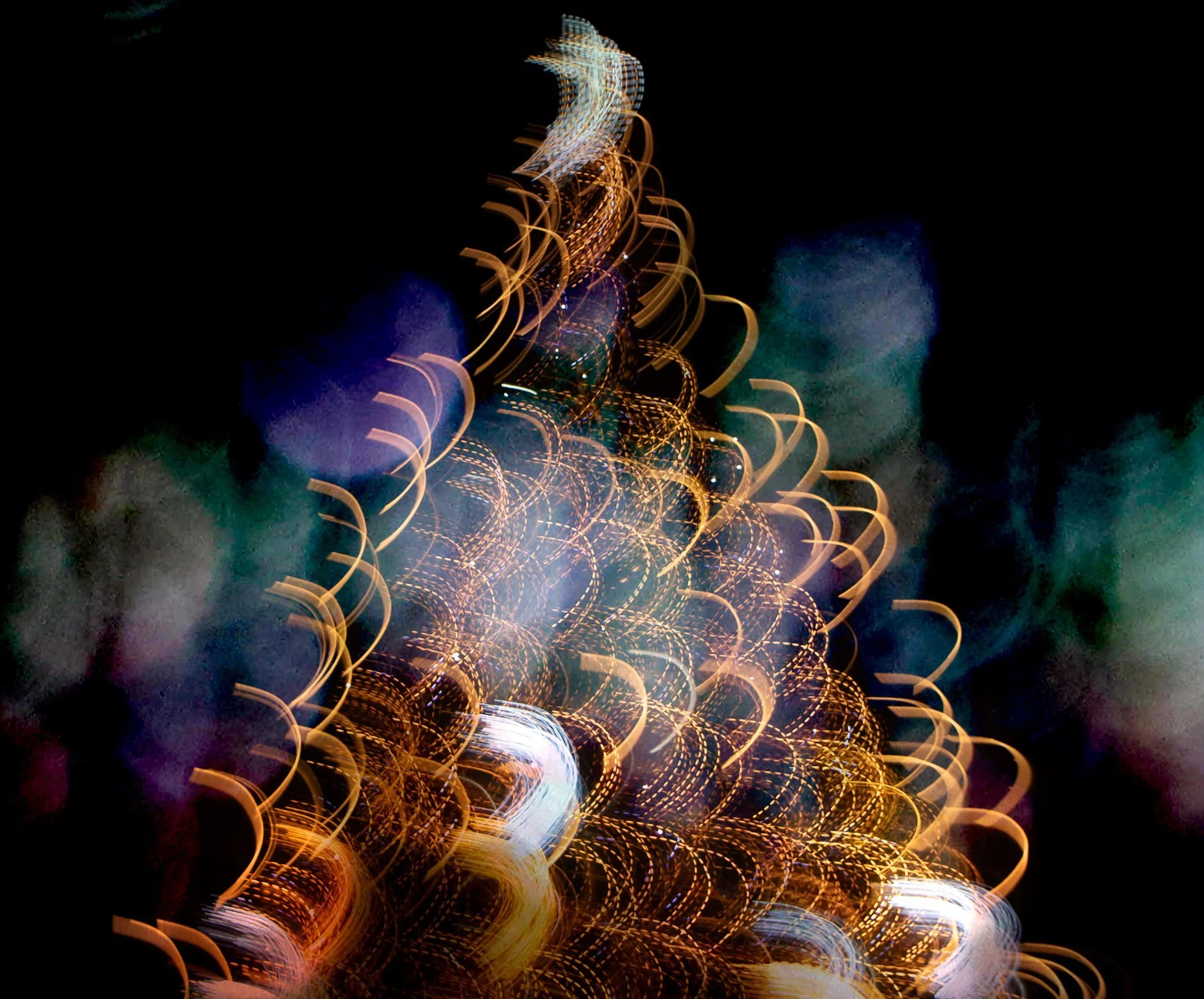 A Multiple Exposure Photography Image of an abstract Christmas tree with added sparkle