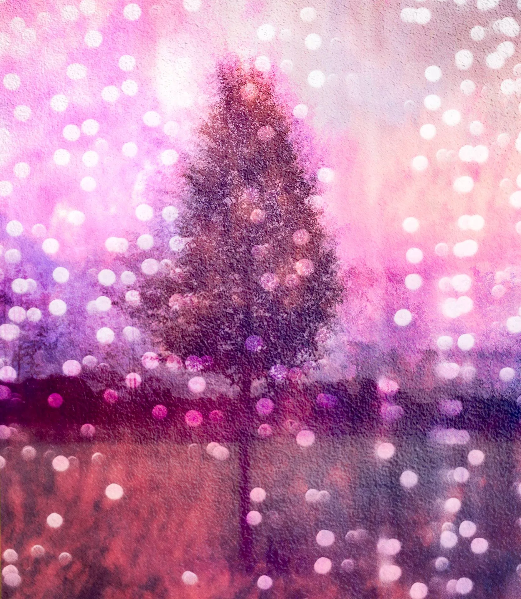 A Multiple Exposure Photography Image of a tree in a sparkly Christmas style.
